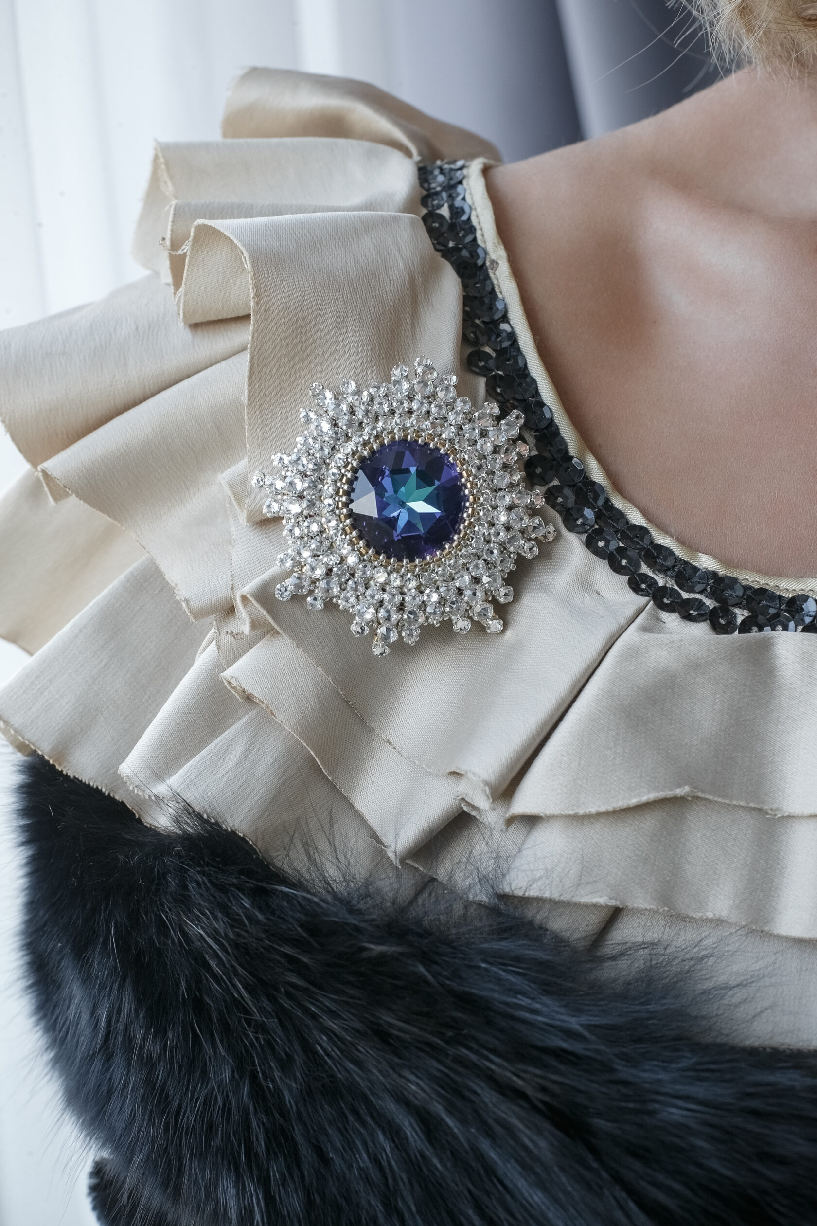 Брошь мне очень понравилась! Ношу её с рюкзачком или свитером. Особенно в холодное время года, когда хочется красок) Она очень красиво переливается на солнце! Брошь сделана аккуратно и чётко, люблю рассматривать её детали. Это настоящая ювелирная работа!